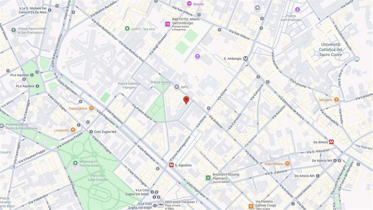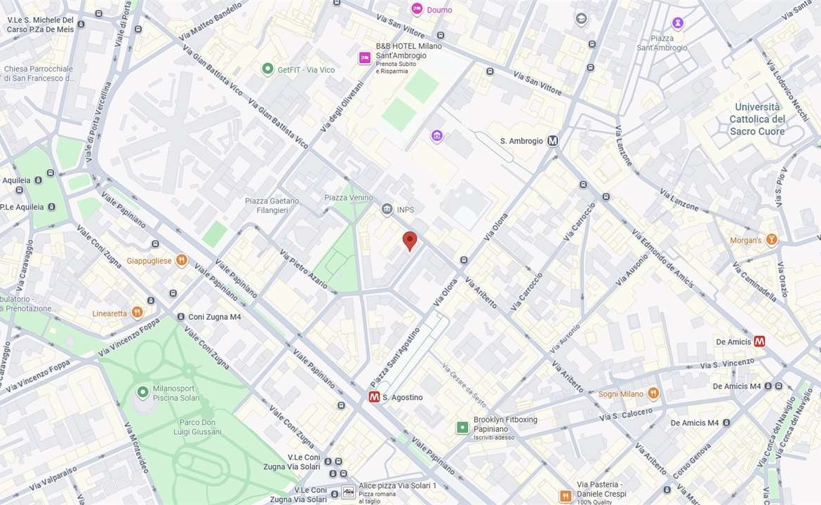 In zona San Vittore, a pochi passi dalla fermata della metropolitana S. Ambrogio e comodo ai servizi primari e secondari.