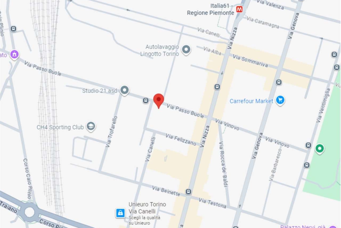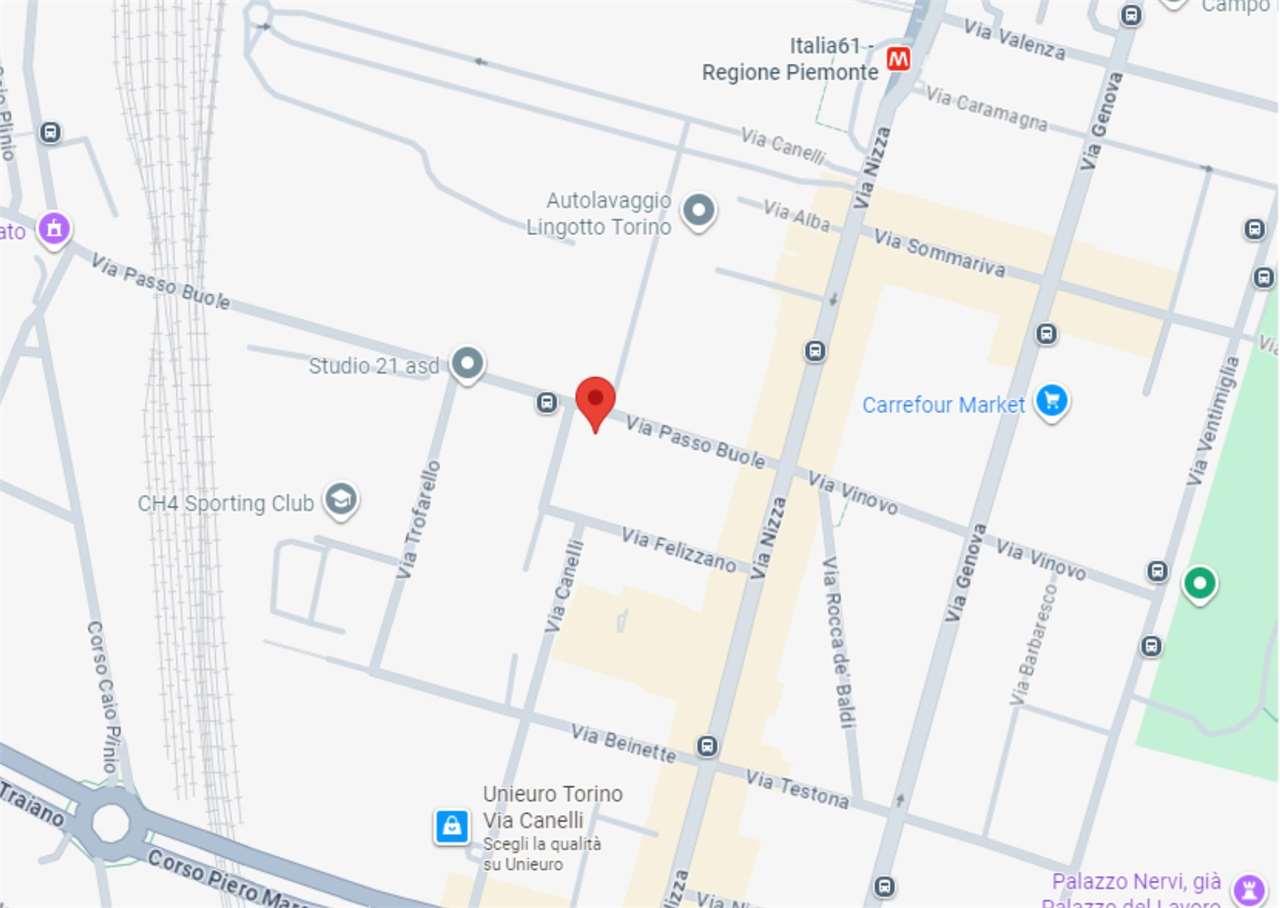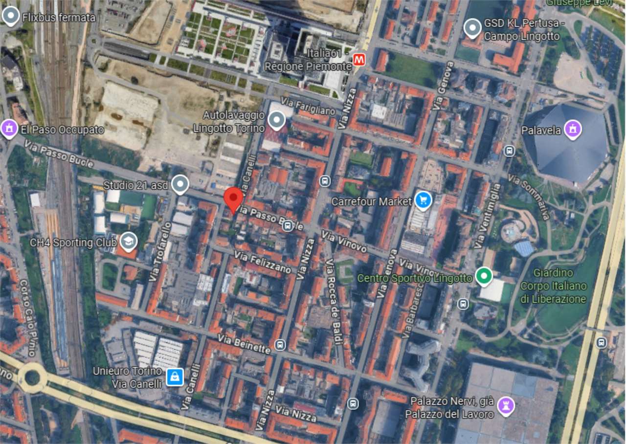 In zona Lingotto, nelle vicinanze della fermata Metro Italia 61, comodo a tutti i servizi primari e secondari.