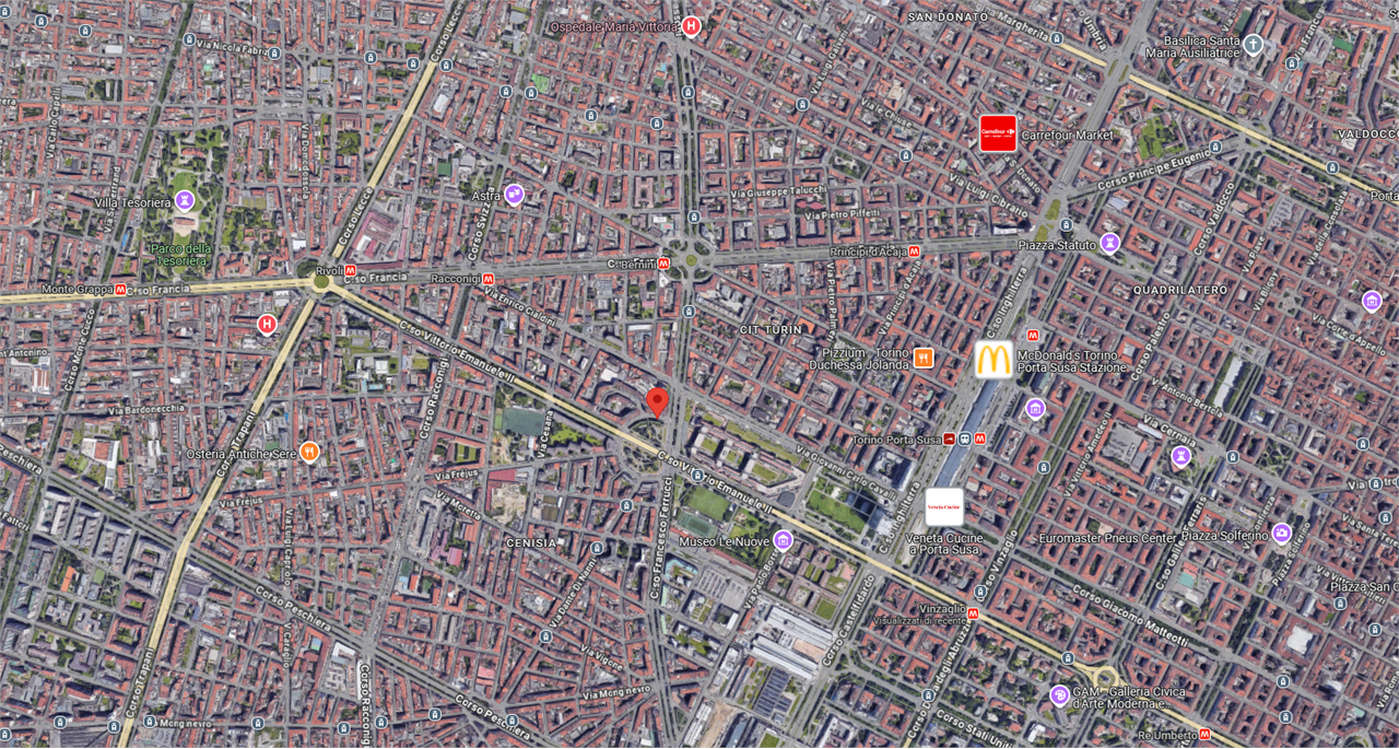 In zona Cit Turin, vicino alla stazione ferroviaria Porta Susa, di fronte al Palazzo di Giustizia e comodo alla metropolitana, ai servizi primari e secondari.