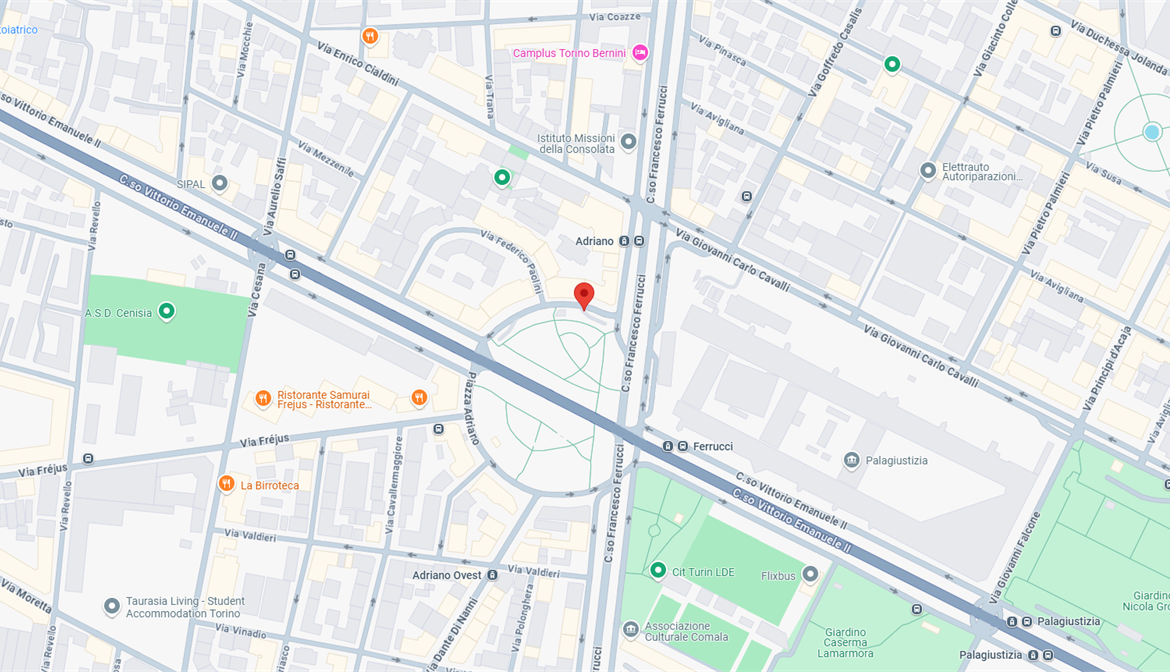 In zona Cit Turin, vicino alla stazione ferroviaria Porta Susa, di fronte al Palazzo di Giustizia e comodo alla metropolitana, ai servizi primari e secondari.