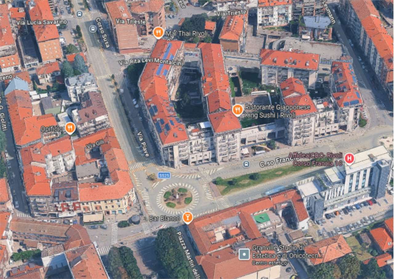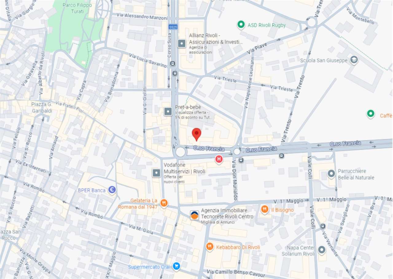 A Rivoli, in zona centrale, in Corso Francia, in complesso polifunzionale con uffici e negozi, in zona di forte passaggio e ben servita.