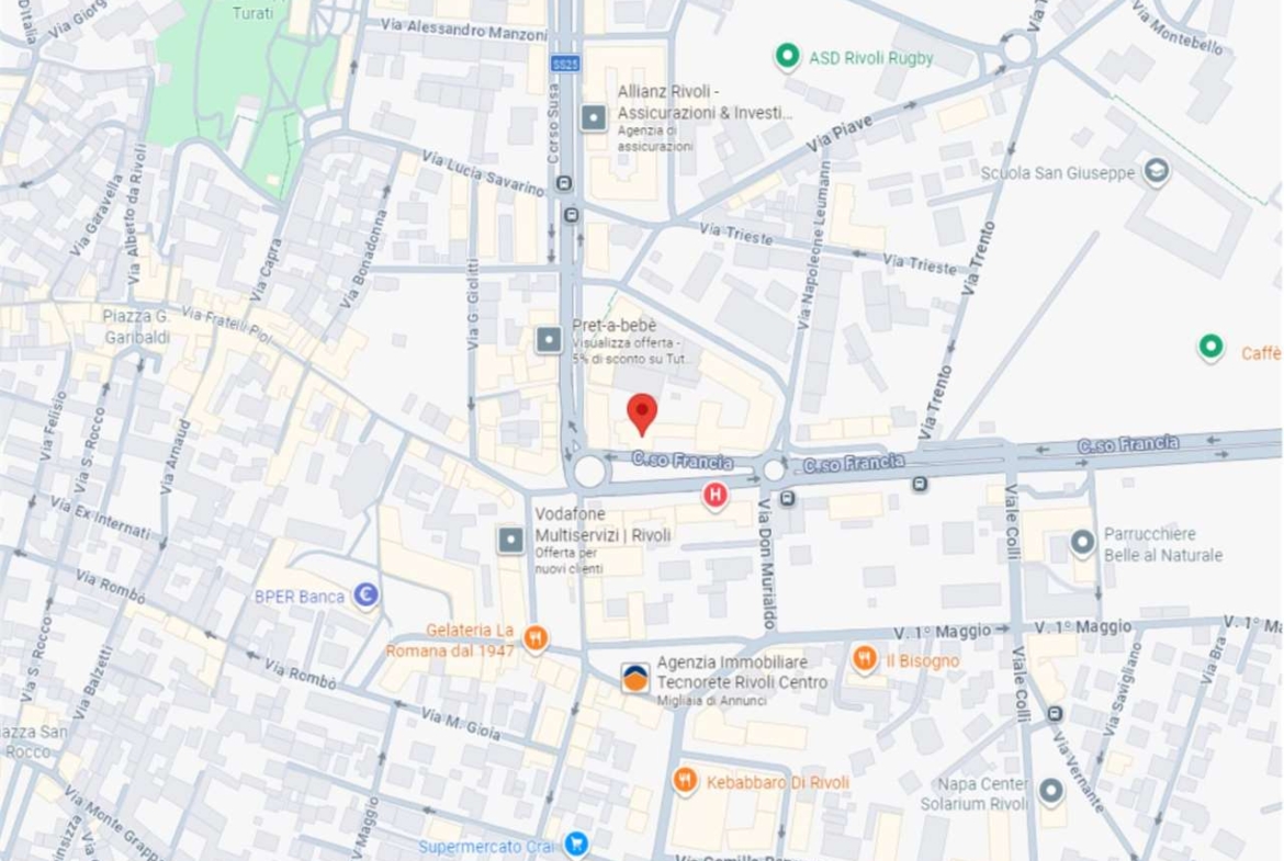 A Rivoli, in zona centrale, in Corso Francia, in complesso polifunzionale con uffici e negozi, in zona di forte passaggio e ben servita.