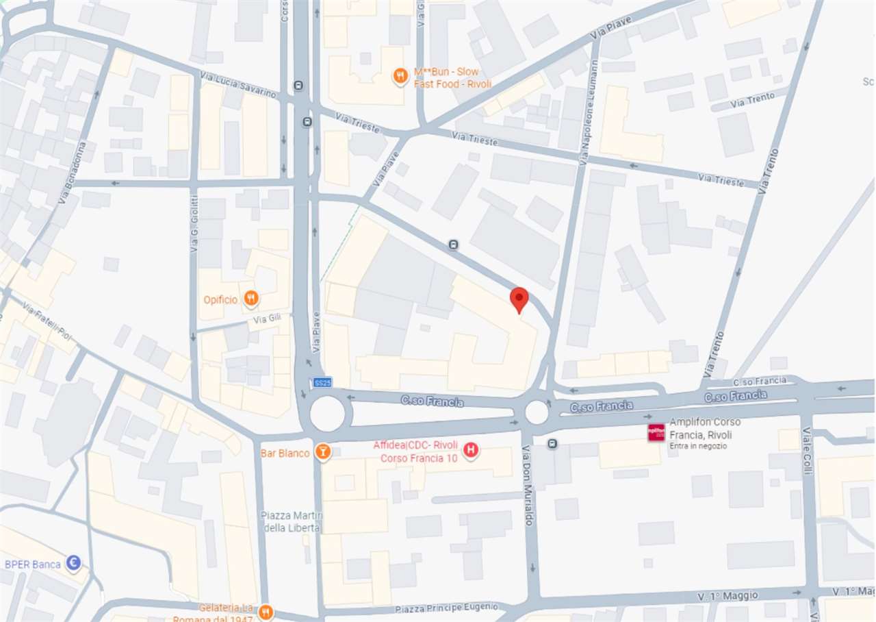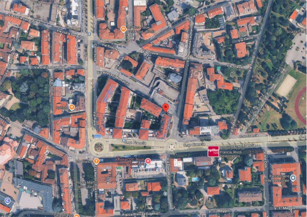 A Rivoli, in zona centrale, all’angolo con Corso Francia, in complesso polifunzionale con uffici e negozi, in zona di forte passaggio e ben servita.