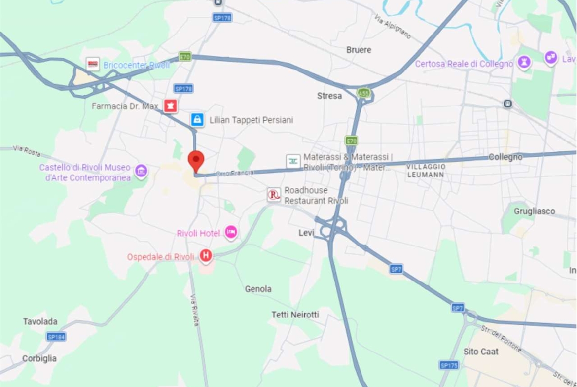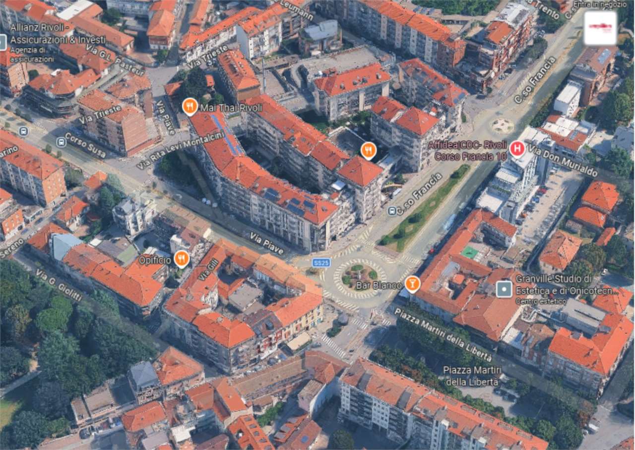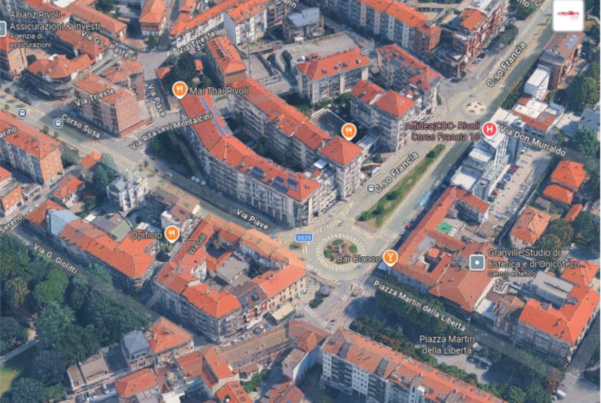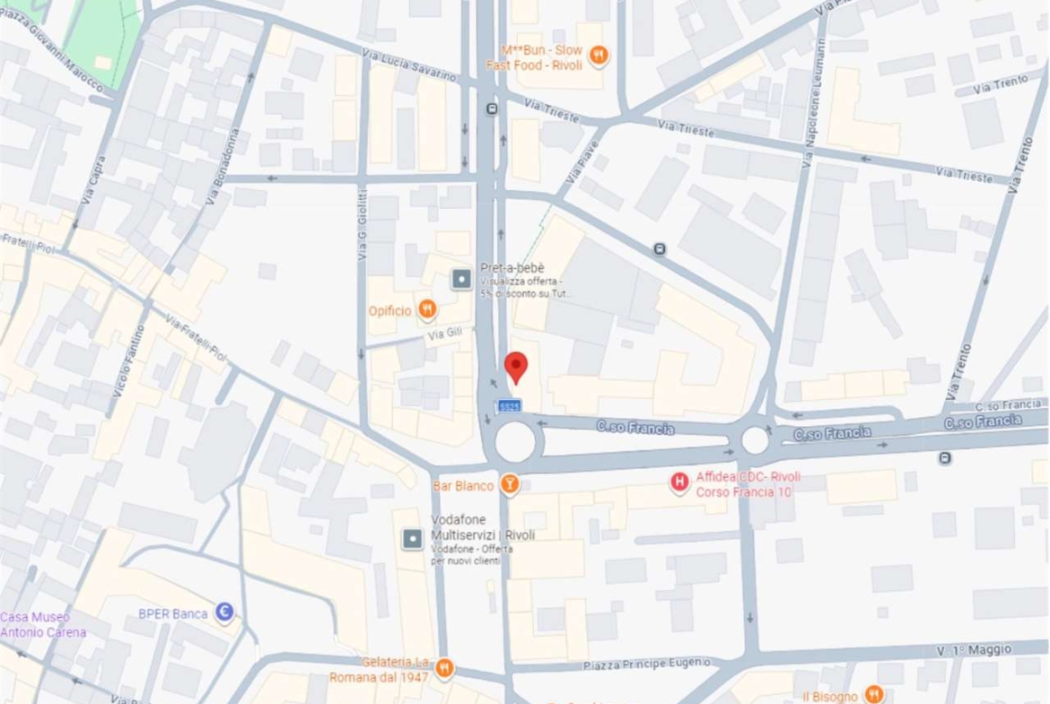 A Rivoli, in zona centrale, all’angolo con Corso Francia, in complesso polifunzionale con uffici e negozi, in zona di forte passaggio e ben servita.