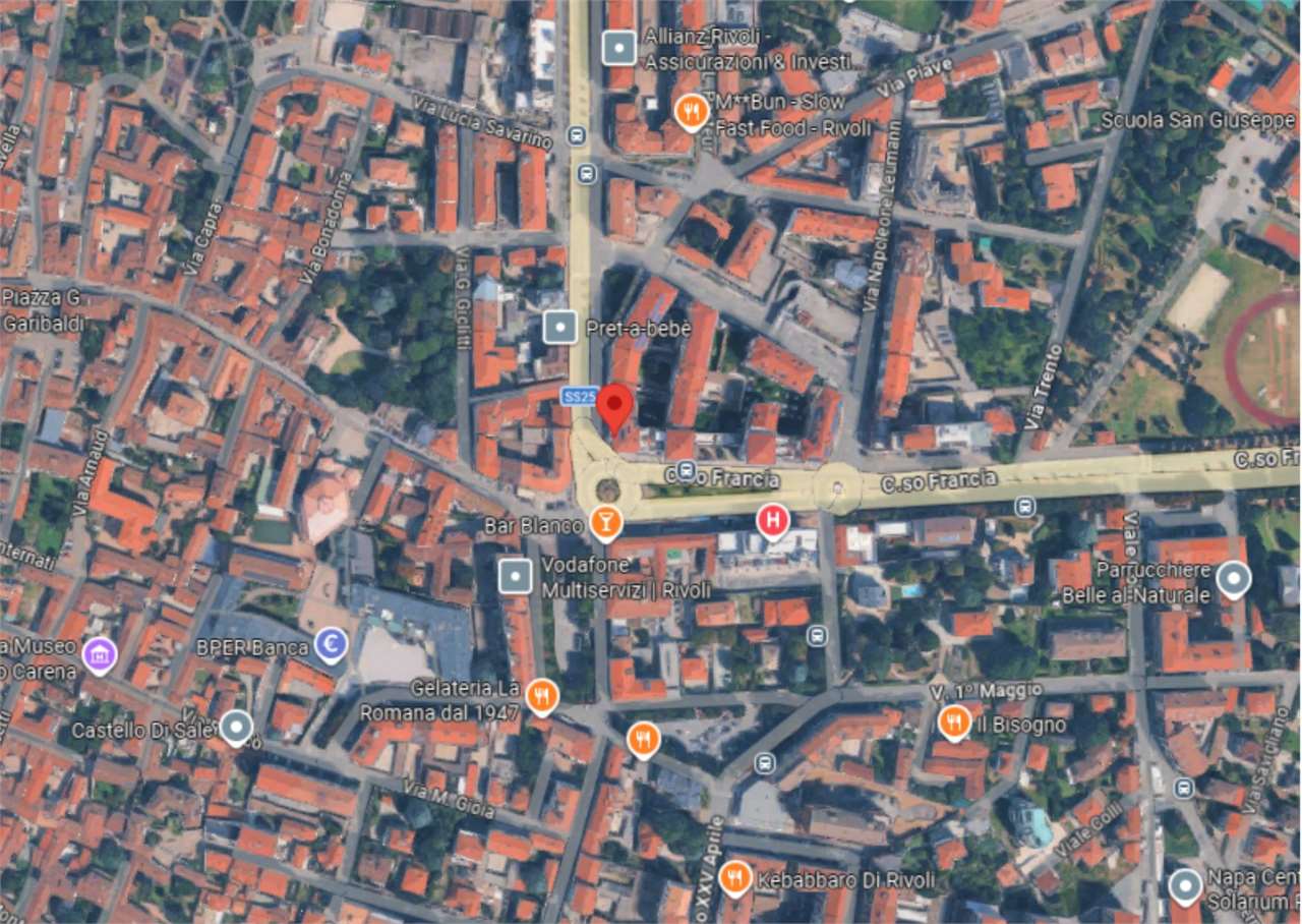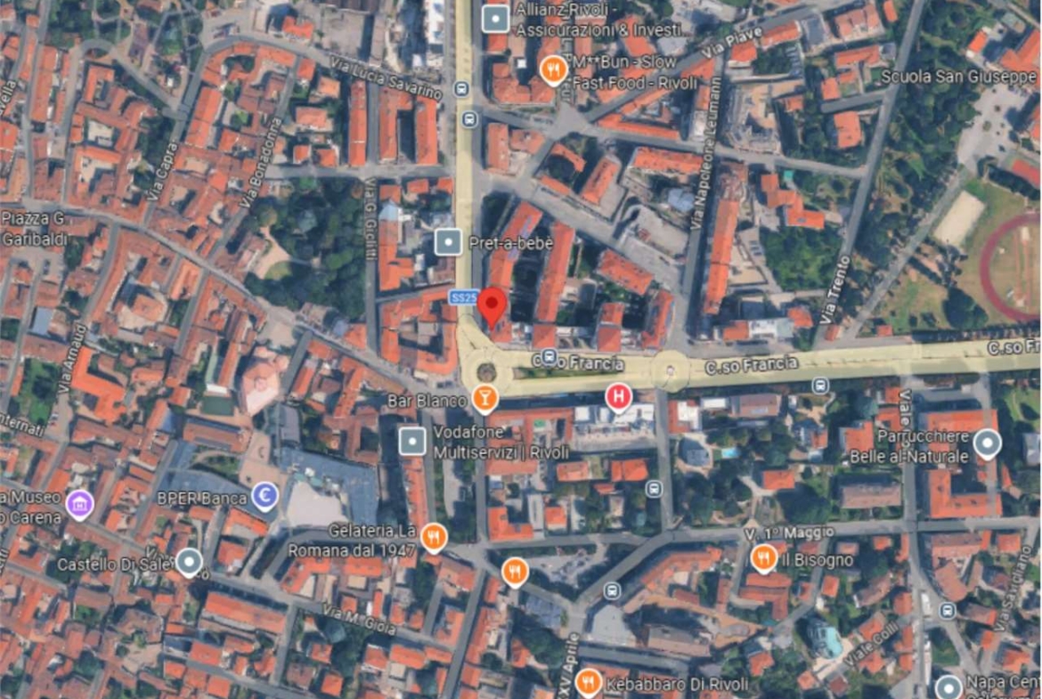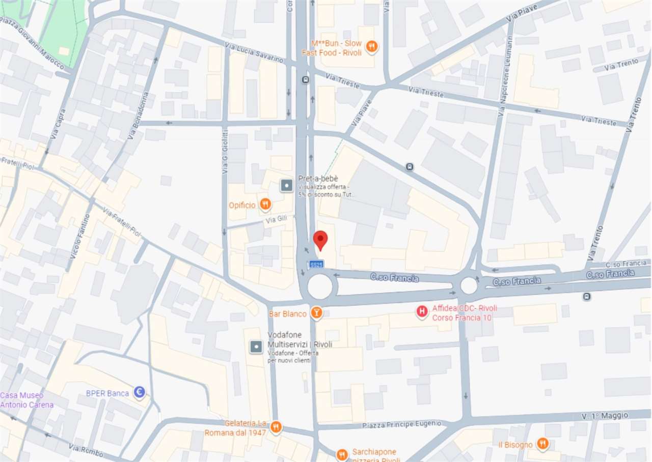 A Rivoli, in zona centrale, all’angolo con Corso Francia, in complesso polifunzionale con uffici e negozi, in zona di forte passaggio e ben servita.